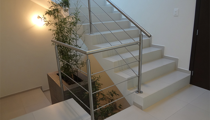Se priorizo la creación de espacios amplios con una gran altura, estilo moderno y con una paleta de colores clara haciendo remates visuales utilizando contrastes de colores y texturas. Casa Navarro está pensada para ser un lugar de convivencia por lo que en planta baja se desarrolla la mayor parte del área pública la cual se conecta entre sí. En la planta alta tenemos una recámara principal con baño vestidor, 2 secundarias con baño y una sala familiar. Se diseñaron con vistas hacia el exterior ya que el inmueble se encontraba cerca de una zona arbolada al igual que en el roof garden.