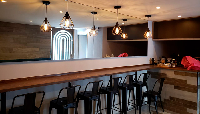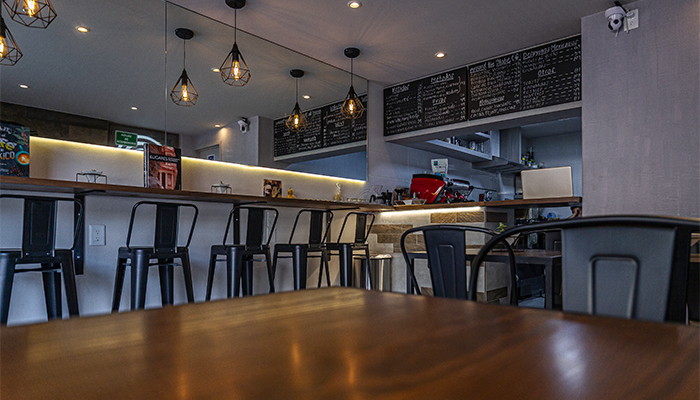 Se implementaron diversas estrategias para generar mayor amplitud y calidad espacial al proyecto como un gran ventanal en el acceso para dar la bienvenida a los comensales y un espejo iluminado a lo largo de la barra para generar sensación de amplitud.